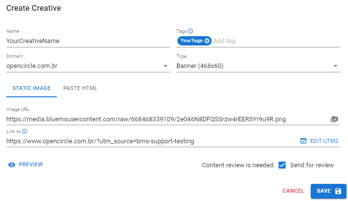 Exemplo - "BMS": Para saber que o criativo veio da plataforma BMS.