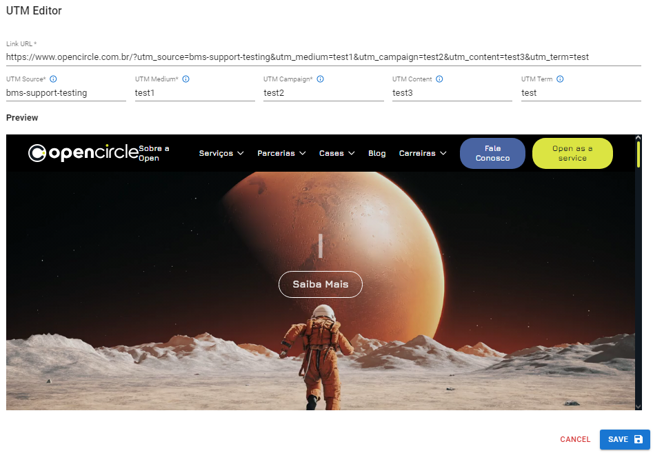 Ao editar as UTMs, cada vez que você alterar uma tag, sua URL de Link será atualizada automaticamente, apresentando a versão atual de suas tags.