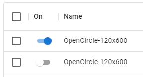 Para ser exibido em uma campanha, um criativo deve estar habilitado. Se desejar impedir que um criativo seja exibido, você pode desabilitá-lo, e ele cessará as impressões imediatamente.