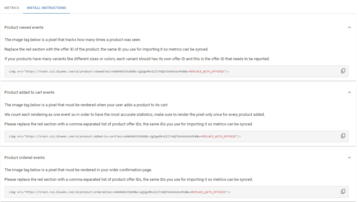 Para ativar nossas métricas e eventos, você precisa instalar um pixel em seu site para começar a coletar dados.