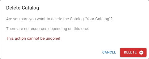 Atenção! Aconselhamos desativar o Catálogo em vez de excluí-lo completamente. Ao excluir um Catálogo, todos os dados e métricas também são perdidos.