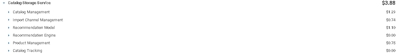 Esta subseção contém os detalhes de custo relacionados ao rastreamento de catálogo. Cada serviço nesta seção tem uma cota gratuita de 1.000 requisições, após a qual você será cobrado por requisição.