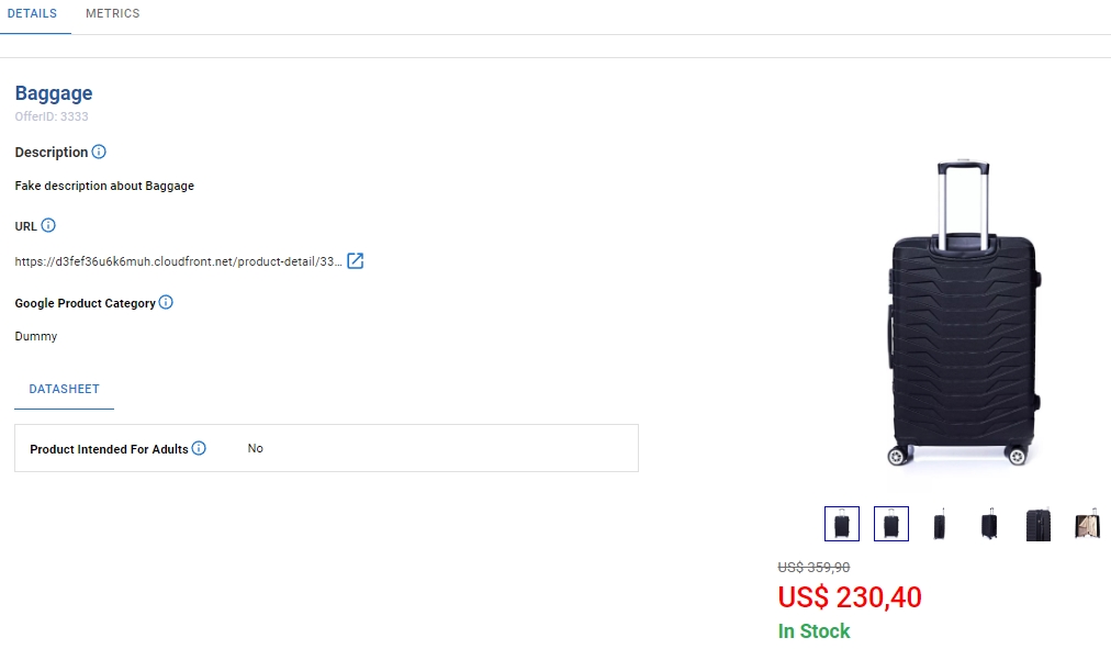 Ao verificar os detalhes de cada produto, você verá todas as informações coletadas do Mapeamento, bem como quaisquer erros no produto.