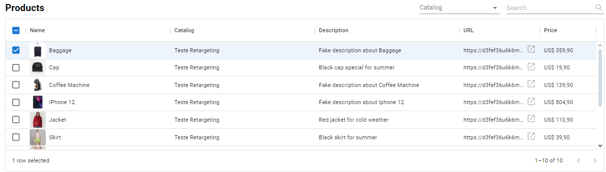 Você pode filtrar seus produtos por Catálogo ou pesquisar manualmente por um produto específico.