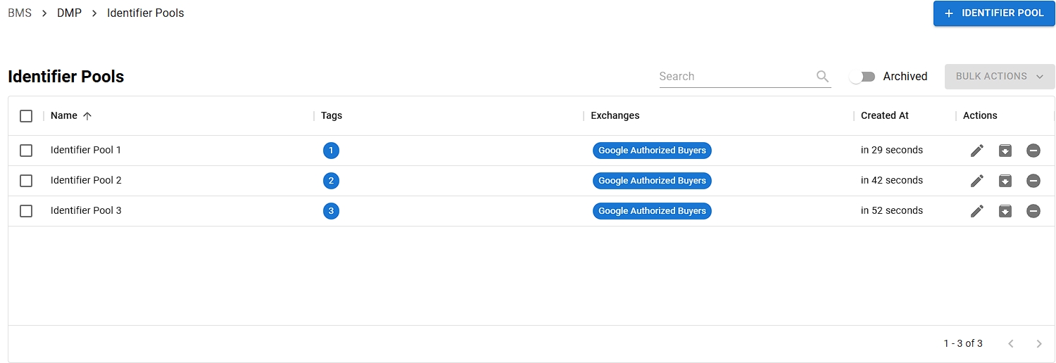 É possível arquivar identifier pools para uma melhor organização. Clique em