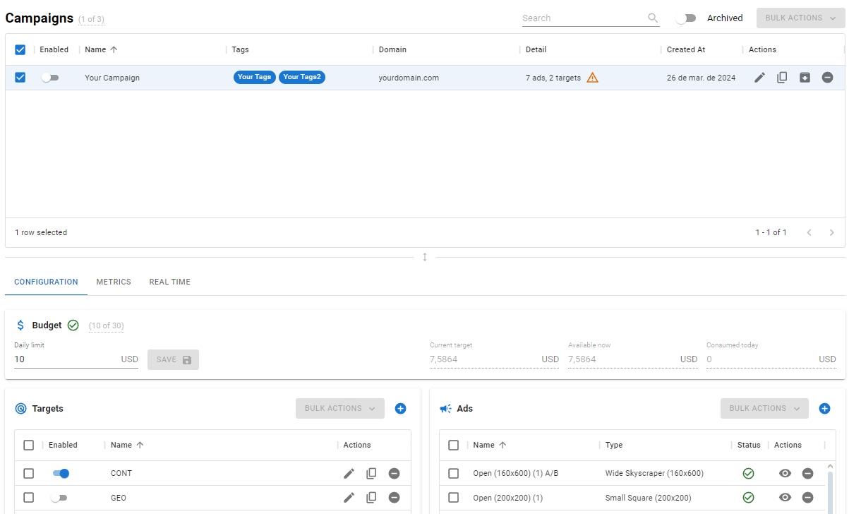Na área de Demand-Side Platform (DSP), você usará todos os recursos criados anteriormente, como Criativos, Grupos de Criativos e Anúncios, para iniciar sua campanha e personalizá-la com mais recursos para torná-la ainda mais eficaz.