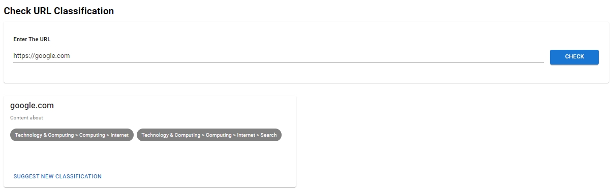 Quando precisar confirmar a classificação de um domínio, simplesmente insira a URL no campo fornecido e clique em