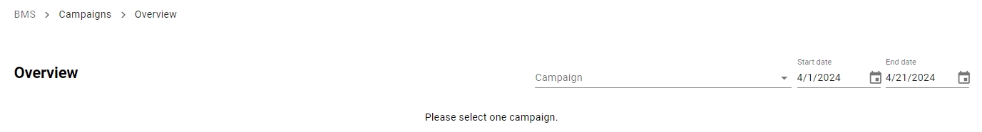 É possível selecionar uma campanha e, em seguida, escolher uma data específica para visualizar a visão geral daquele período.