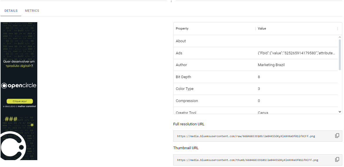 Ao verificar a aba Detalhes de cada mídia, você terá acesso a todas as informações relativas àquela mídia selecionada.