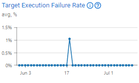 Exemplo: Se uma execução de chamada falhar, verifique a configuração do seu pipeline de eventos ou se a plataforma está passando por instabilidade, pois isso pode causar a falha. Neste gráfico, você pode ver que, no período de um mês, houve uma taxa de falha de 1% em um dia, seguida por nenhuma falha depois.