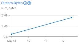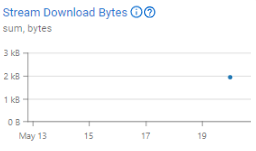 Exemplo: Assim que você começar a baixar os dados de seus fluxos de eventos, será informado do número total de bytes baixados a cada dia. Isso ajuda a acompanhar quantos dados foram baixados. Se o volume de dados for alto, indica que muitos eventos foram capturados do fluxo de eventos. Neste gráfico, você pode ver que apenas 2 KB de dados foram baixados.