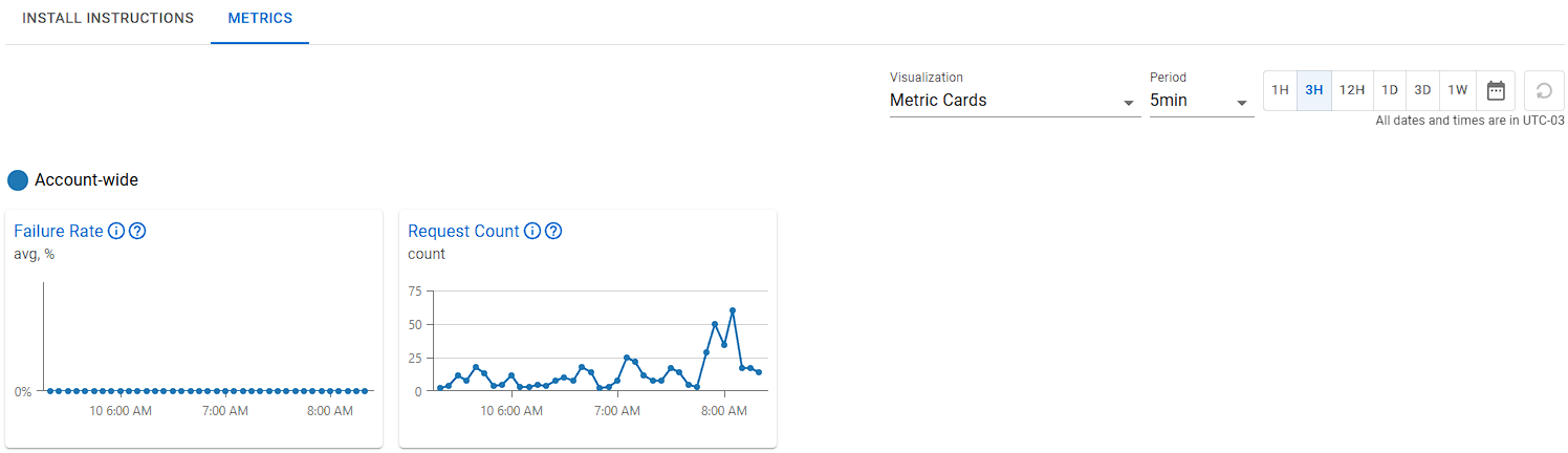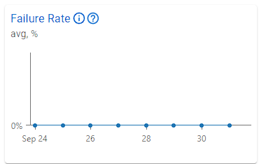 Exemplo: Nesta imagem, o período definido foi de 1 semana, dividido em períodos diários. Como essa métrica mostra a taxa de falhas, o ideal é que os resultados sejam o mais baixos possível. Você perceberá que, neste caso, a taxa de falhas foi de 0%, o que significa que nenhuma requisição falhou durante esse período.