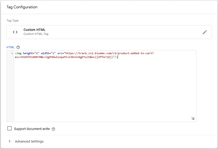 Lembre-se de substituir o ID da Oferta pelo identificador do produto usado em seu site ou usar uma variável do GTM previamente configurada vinculada a ele. Você pode saber mais sobre como o ID da Oferta da BMS funciona no nosso artigo sobre Catálogos.