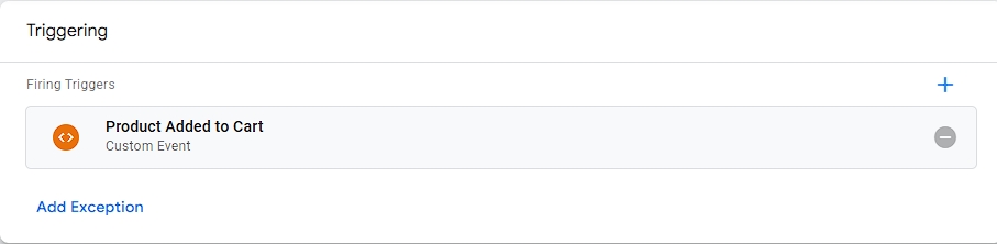 Anexe este gatilho à tag de Adicionar ao Carrinho que você criou, para que ela seja ativada somente quando esse botão for clicado.