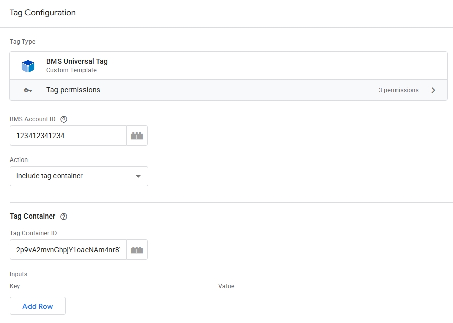 ID do Contêiner de Tag: Insira o ID do Contêiner de Tag da BMS.