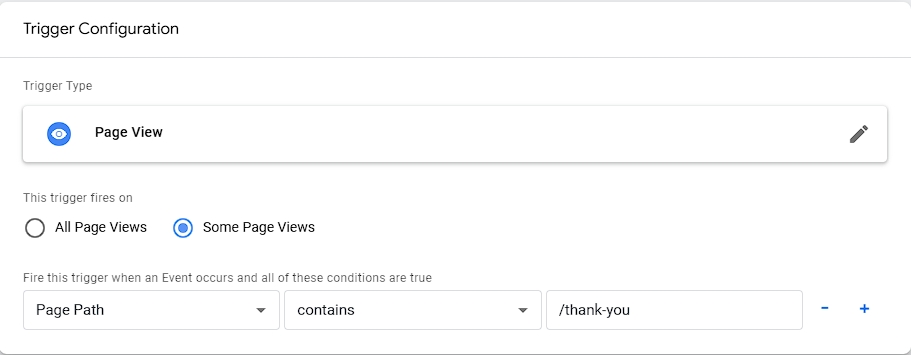 para começar a configurar seu gatilho.Escolha Visualização de Página como tipo de gatilho.