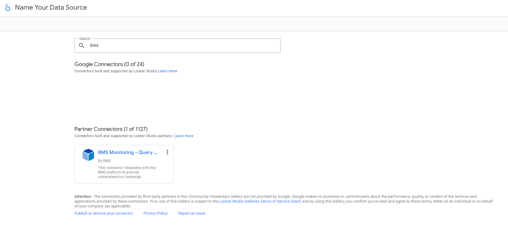 A BMS possui um conector parceiro no Looker Studio para a API de métricas. Esse conector permite enviar dados das suas campanhas BMS para um relatório personalizado no Looker Studio. Abaixo estão os passos para configurar a BMS como Fonte de Dados.