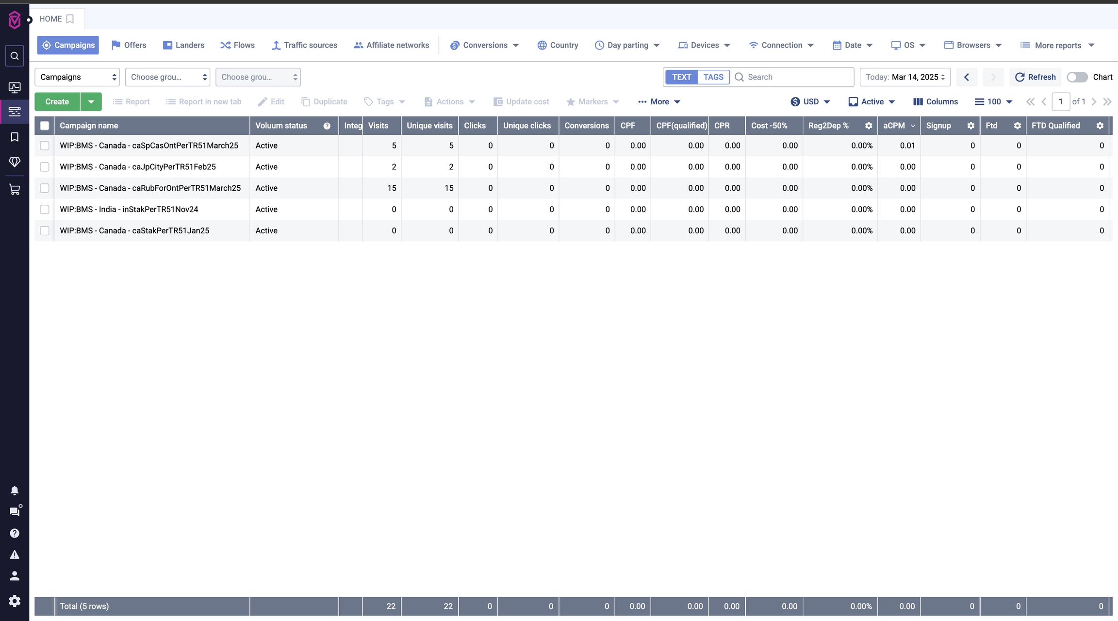 Você deve adicionar a BMS como uma fonte de tráfego em suas campanhas do Voluum para extrair dados.